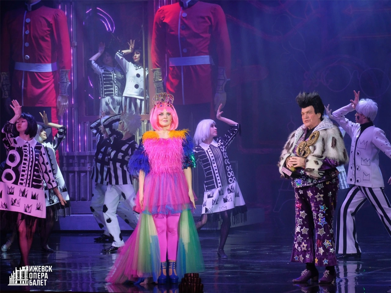 Либретто — Юрия Энтина и Василия Ливанова по сказке братьев Гримм Режиссёр-постановщик — народный артист УР, заслуженный деятель искусств УР Николай Маркелов Дирижёр — заслуженный деятель искусств УР Николай Роготнев Сценография и костюмы — Сергей Новиков (Санкт-Петербург) Хормейстер — заслуженный деятель искусств УР Людмила Елисеева Оркестровка — заслуженный деятель искусств УР Лев Накаряков Во всеми любимом мультфильме «Бременские музыканты» Г. Гладкова, Ю. Энтина и В. Ливанова соединились мода и популярные персонажи 60-х годов 20 века, остроумные шаржи и пародии, смешались сказка и современность. Экспериментом стал и этот спектакль режиссёра Николая Маркелова и художника Сергея Новикова. Основа сюжета сказки — это, конечно, история любви, а ещё непременное желание стать знаменитым и покорить зрителя, стать звездой! На эту тему можно пофантазировать. Может быть, бременские музыканты не обязательно животные, а их имена — это творческие псевдонимы или прозвища? Тогда Король — это Король Эстрады или Рок-звезда прошлых лет, а его подданные — чёрно-белые клавиши! Всё происходящее на сцене становится ярким неоновым шоу, посвящённым 20 веку, его пластинкам и дискам, поп- и рок-музыке. Финалом станет вручение главной музыкальной награды и признание наших героев настоящими звездами!