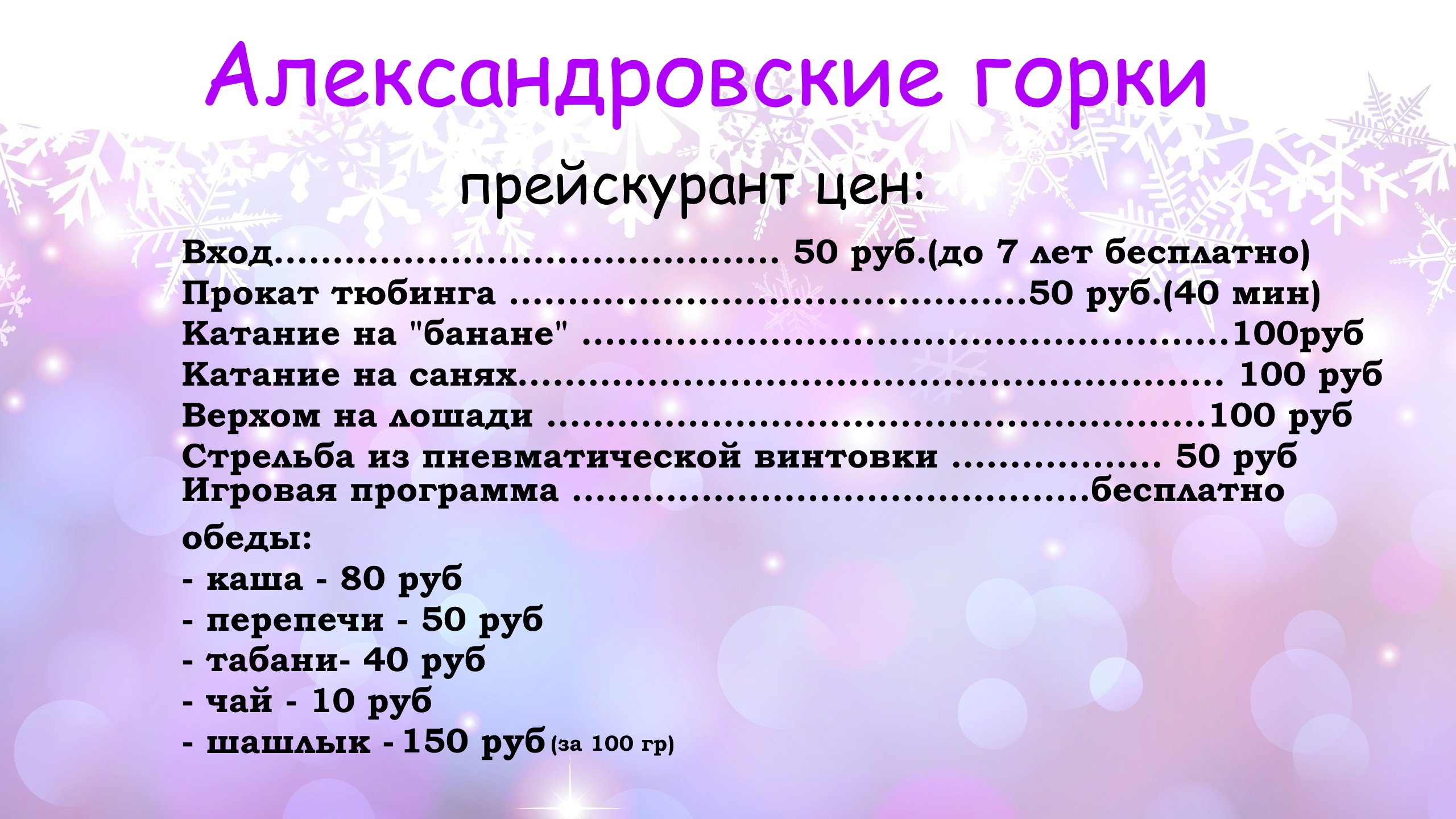 Александровские горки ждут вас каждые выходные.