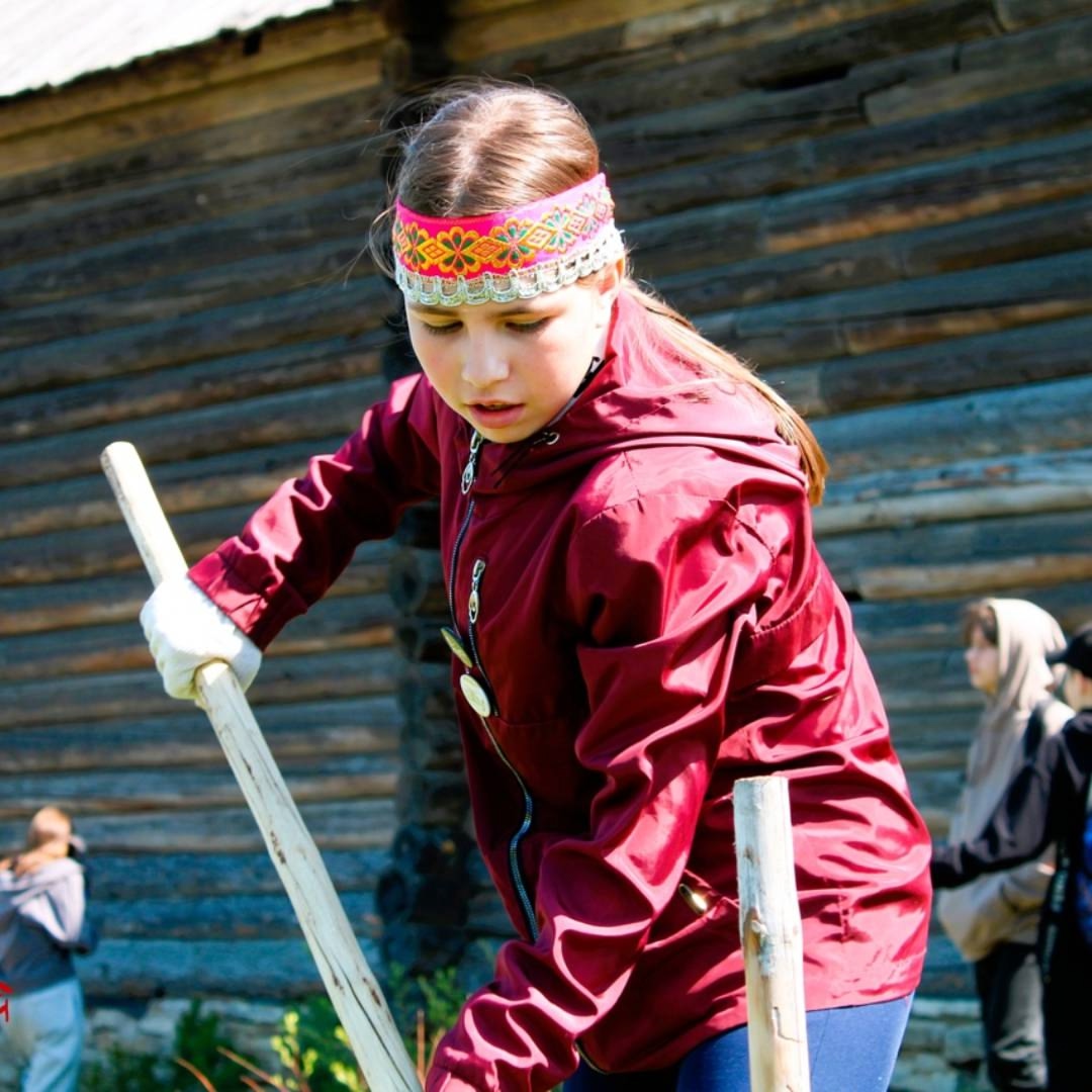 Программа проходит в игровой форме, где гости не просто узнают об обязанностях членов семьи конца XIX в. и детских занятиях, но и попробуют разобрать настоящий сруб, освоить стрельбу из лука, распилить бревно и добыть огонь. Под чутким наблюдением нашего сотрудника девочки попробуют пеленать и прясть, принесут воды на коромысле и изготовят куколок из одуванчиков.