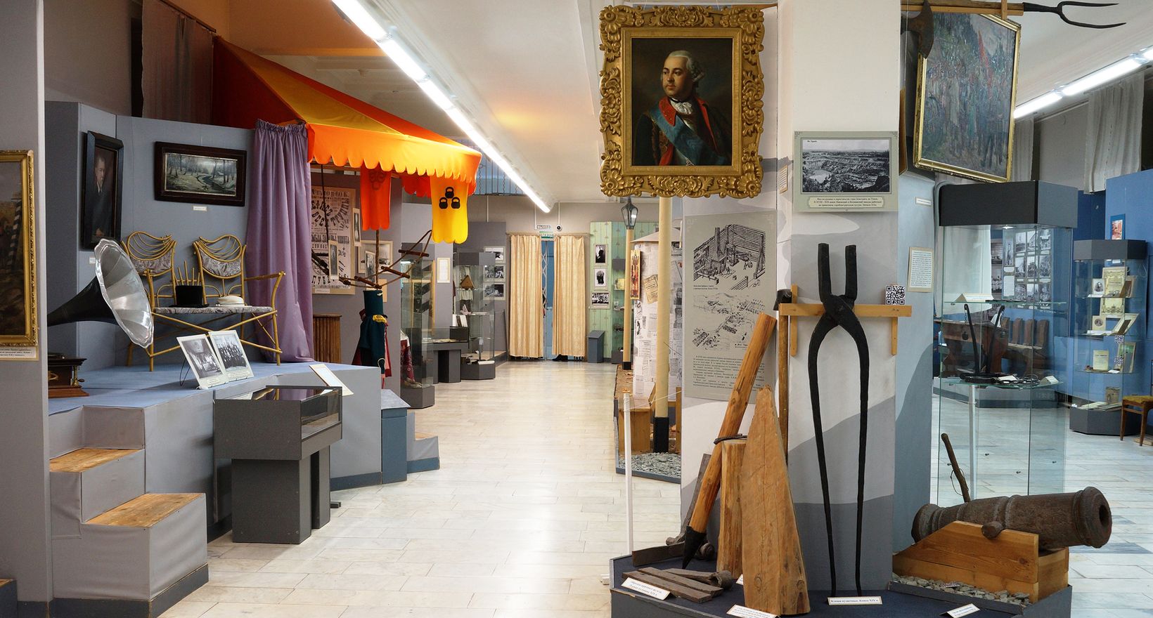 В разделе экспозиции о культуре и истории края «Города начинались с заводов. XVIII – начало XX вв.» акцент сделан на том, что заводы являлись не только градообразующим, но и культурообразующим фактором для нашего края. Посетитель попадает сначала в «заводской цех», затем в частную оружейную мастерскую. Прогуливаясь по музейной «улице», мы можем заглянуть в начальную школу, земскую больницу, купеческую гостиную, в дом мастерового и даже почувствовать атмосферу культурной жизни жителей города-завода, побывав в Общественном саду, первом ижевском цирке и театре для рабочих. Дизайн экспозиции позволяет ощутить себя в пространстве города-завода, каким задумал его первый архитектор Ижевска С.Е. Дудин.