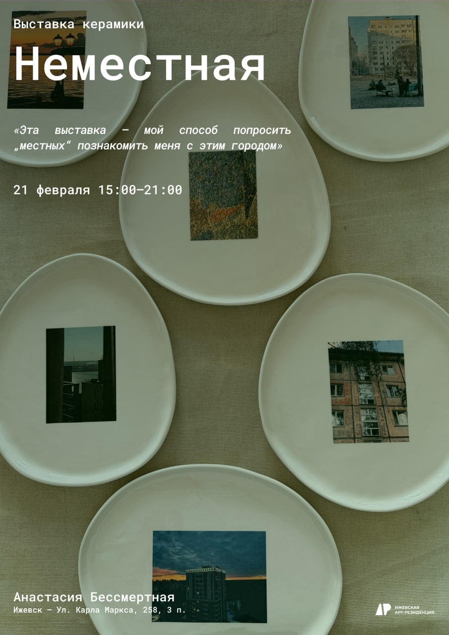 В Малом зале Арт-резиденции художница-керамистка Анастасия Бессмертная будет знакомиться и знакомить с Ижевском через выставку «Неместная».