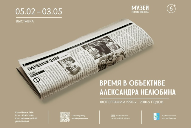 «Время в объективе Александра Нелюбина» — это ретроспектива профессиональной деятельности автора и зафиксированный посредством фотоискусства историко‑культурный контекст Ижевска периода 1990–2010‑х годов.
