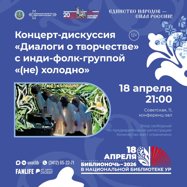 Концерт-дискуссия «Диалоги о творчестве»Хотите провести Библионочь под живую музыку? Тогда приходите на встречу с инди-фолк группой «Не холодно».