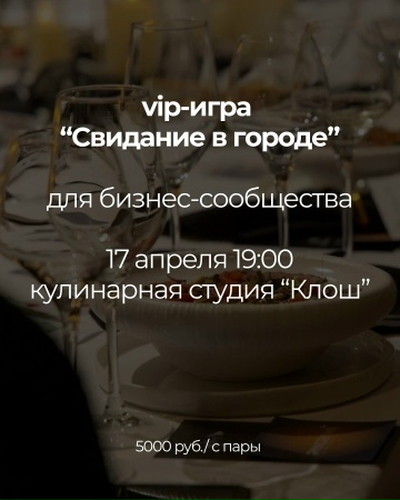 "Свидание в городе" VIP-ИГРА — актуальное мероприятие в Ижевске. Узнайте подробности о месте, времени проведения и билетах, чтобы выбрать удобную дату для посещения.