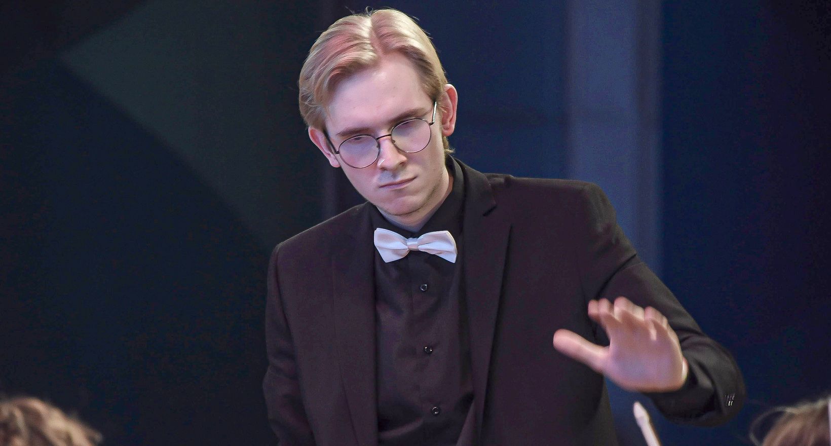 Ведет концерт Григорий Волков. Студент музыковедческого и оперно-симфонического факультетов МГК им. П. И. Чайковского. Обладатель гранта Президента России. Преподаватель ДМШ АМУ при МГК им. П. И. Чайковского.
