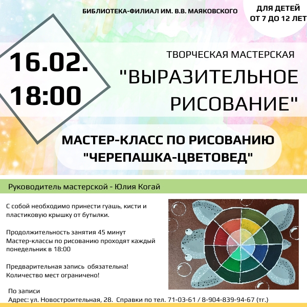 Черепашка - цветовед. Рисование — актуальное мероприятие в Ижевске. Узнайте подробности о месте, времени проведения и билетах, чтобы выбрать удобную дату для посещения.