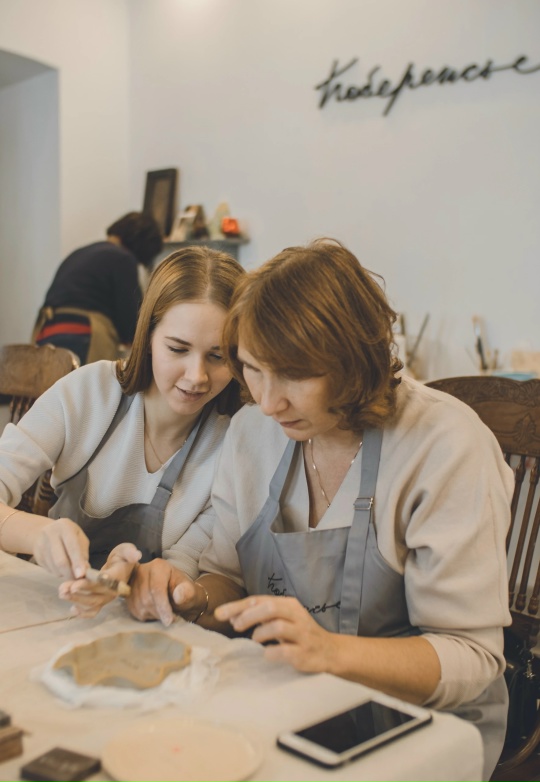 Мы проводим персональные занятия, и можем организовать лепку для вашей компании. Берите с собой друзей, коллег, или пригласите близких на семейную лепку - скучать не придется, ведь каждый реализовывает свою идею. Это может быть кружечка в цветочек, набор пиал для чая, кашпо для растения, или тарелочки для украшений, небольшая ваза.