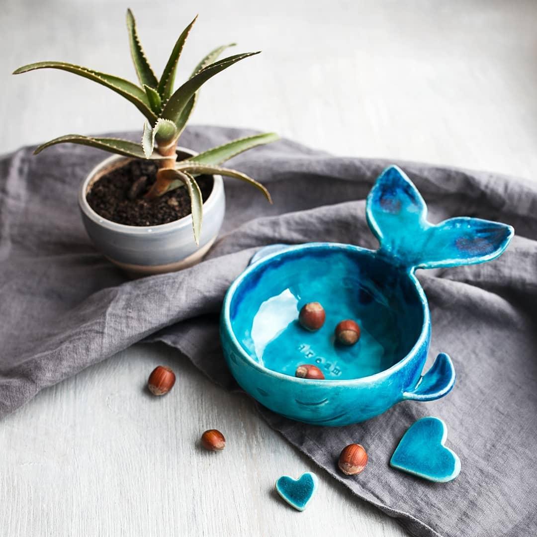 А также на нашем мастер-классе вы сможете сделать своего уникального кита, отдавшись полету фантазии. Вы вылепите руками пиалу, а после вырежете и прикрепите хвостик и плавнички. После чего сможете сделать на ките узоры и выбрать цвет глазури, которой мы его покроем после первого обжига.