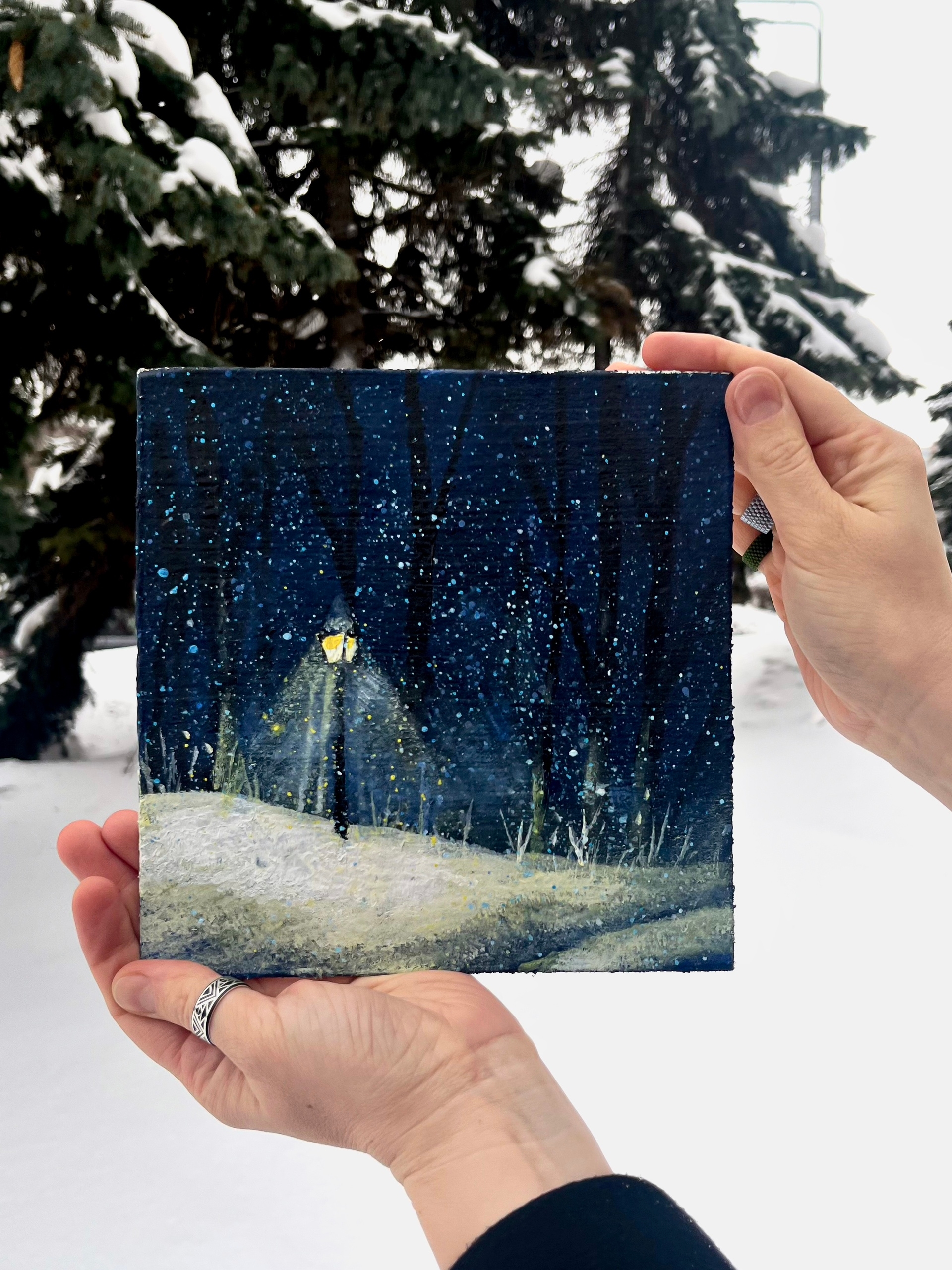 «Зимний вечер» мастер-класс акрилом на оргалите. Проводит специалист Музея Ксения Логинова.