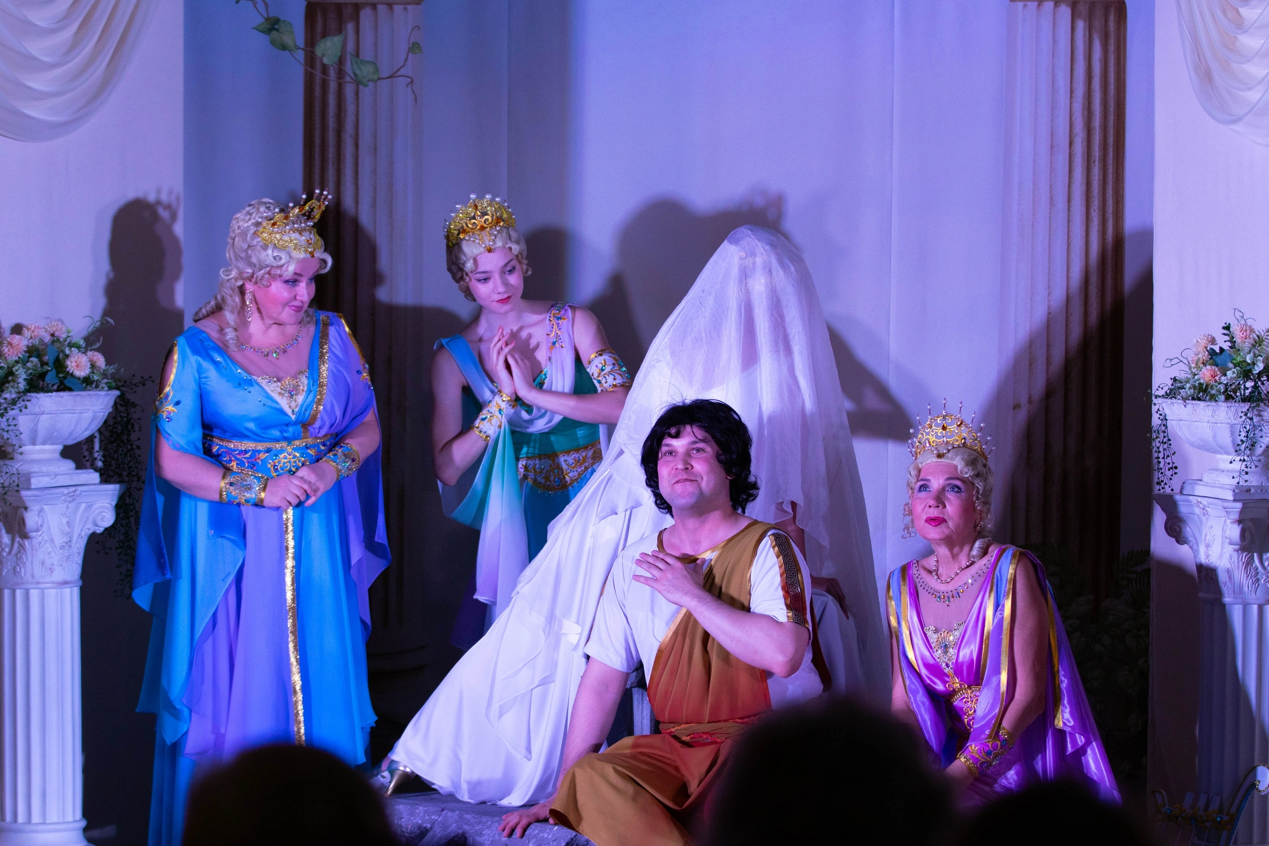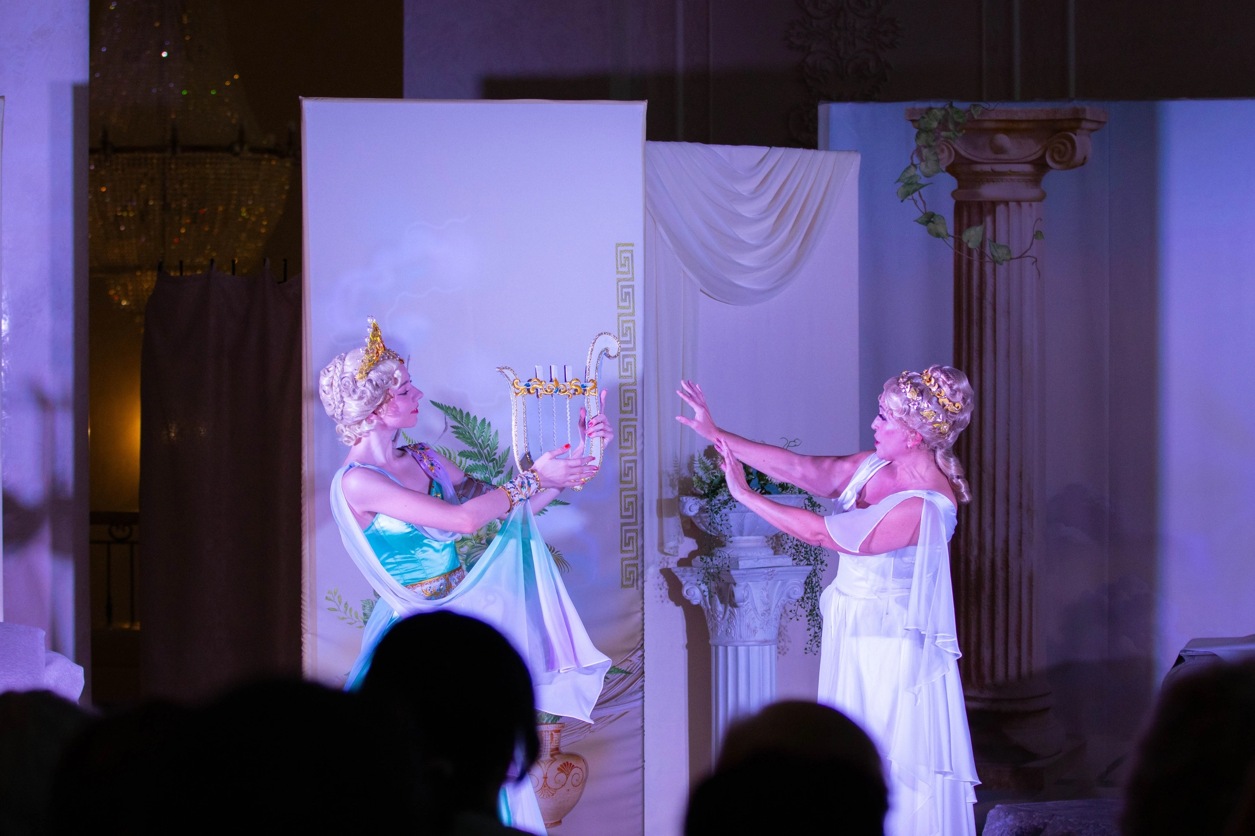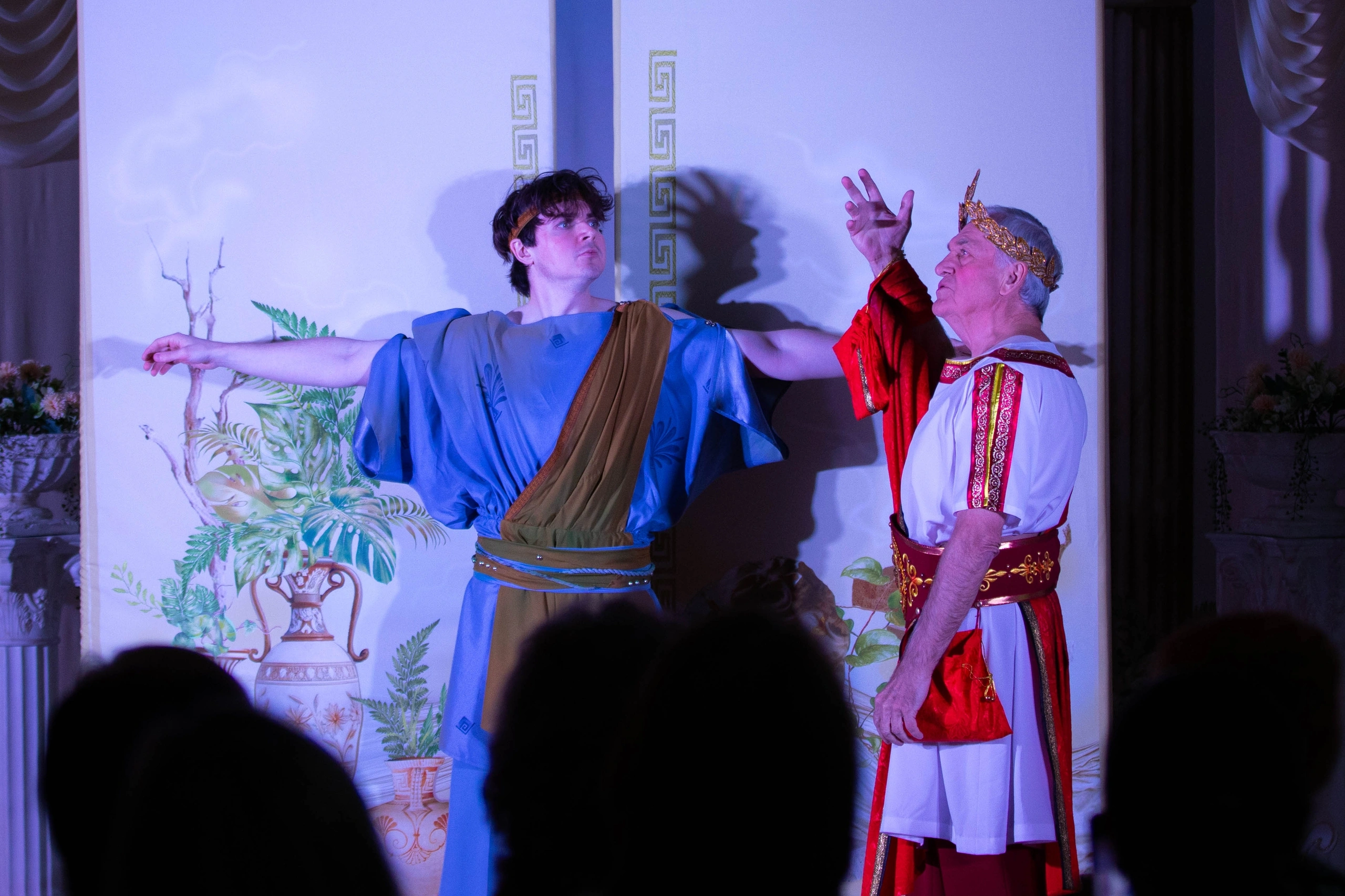 Спектакль проходит в фойе театра. Рассадка свободная.