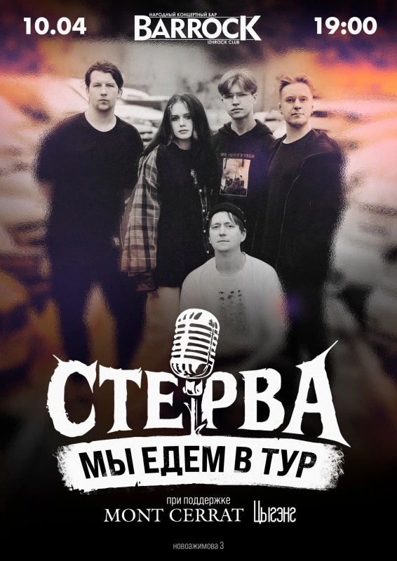 "Мы едем в тур". группа Стерва — актуальное мероприятие в Ижевске. Узнайте подробности о месте, времени проведения и билетах, чтобы выбрать удобную дату для посещения.