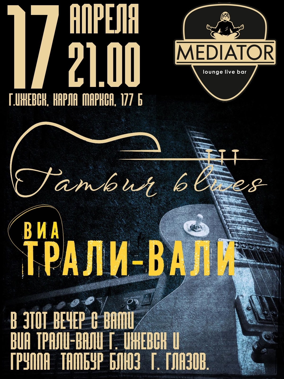 ВИА Трали-Вали / ТАМБУР БЛЮЗ — актуальное мероприятие в Ижевске. Узнайте подробности о месте, времени проведения и билетах, чтобы выбрать удобную дату для посещения.